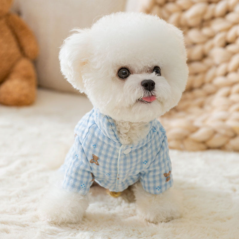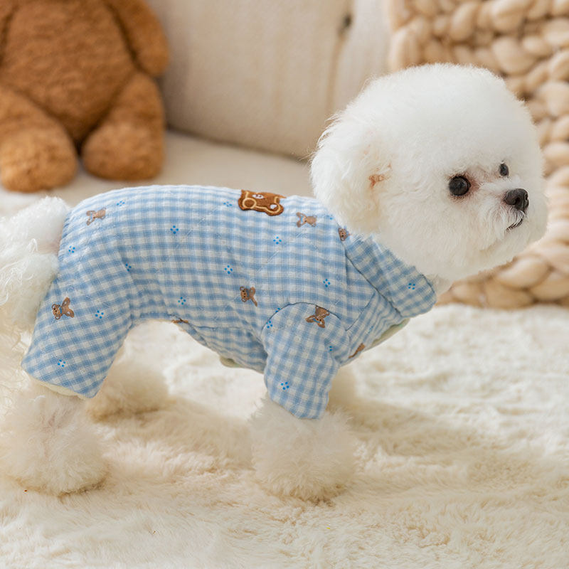 宠物小狗狗衣服冬装棋盘格小熊四脚棉衣保暖比熊泰迪小型犬秋冬季