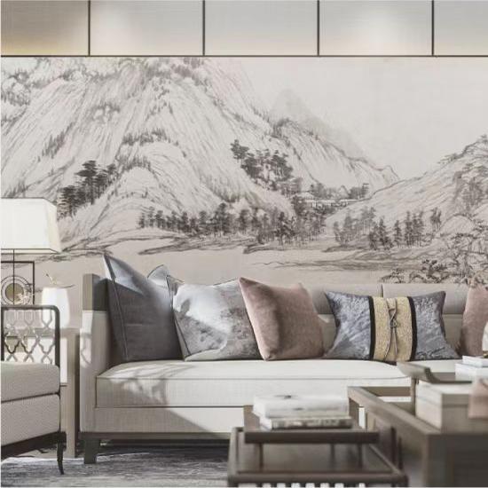 新款中式意境山水壁布电视背景墙纸客厅沙发墙布酒店壁纸3d壁画