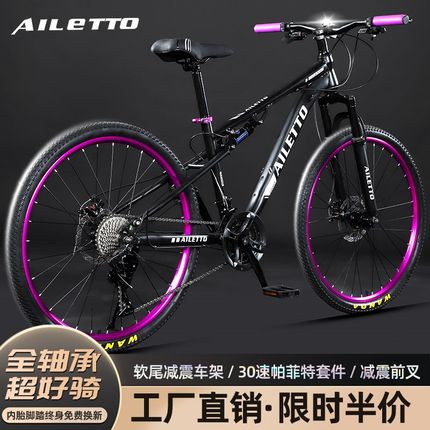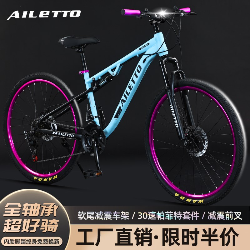 双减震软尾山地车越野变速车男款油碟刹女土坡车自行车成人单车