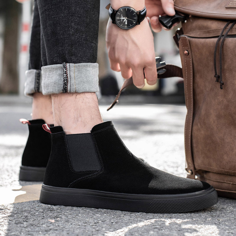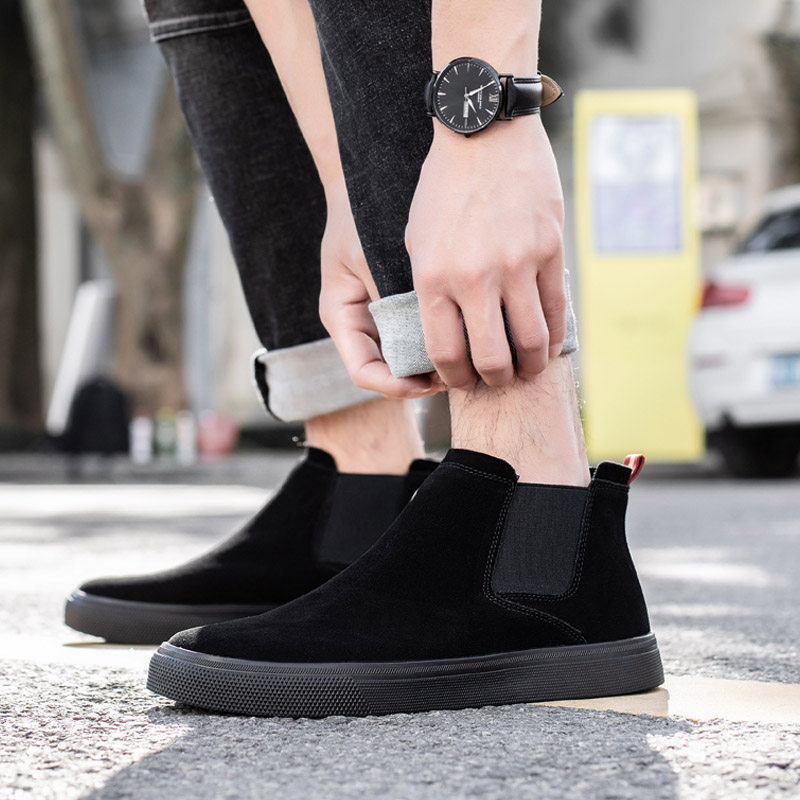 韩版休闲高帮皮鞋潮流马丁靴中帮男鞋子百搭高邦男秋冬加绒棉鞋男