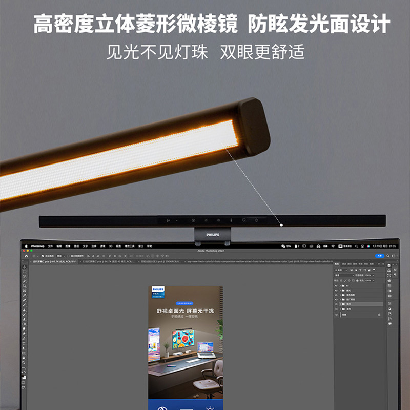 飞利浦屏幕挂灯显示器电脑灯护眼笔记本壁灯智能显示屏补光灯