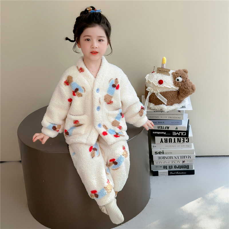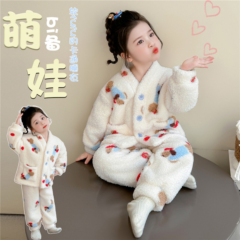 儿童女宝宝秋冬款法兰绒睡衣女童新款洋气可爱珊瑚绒1家居服2套装
