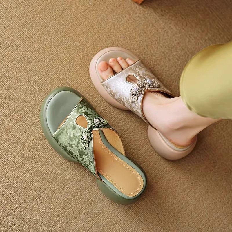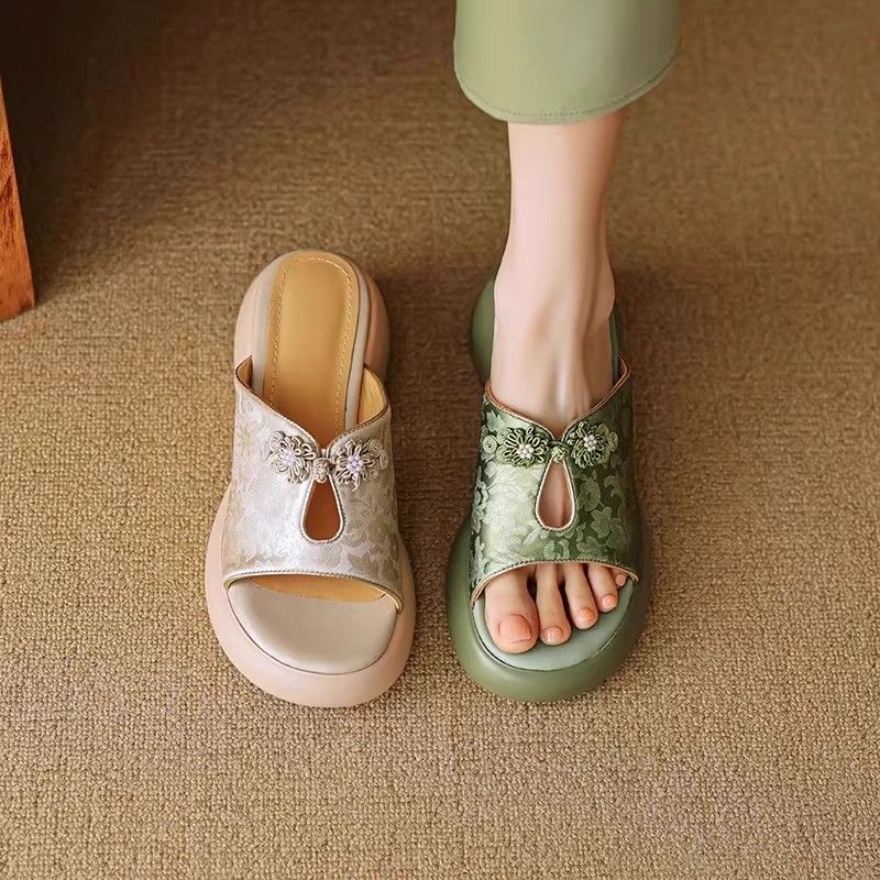 国风新中式拖鞋女2024夏季新款百搭外穿粗跟厚底高跟凉拖鞋配裙子