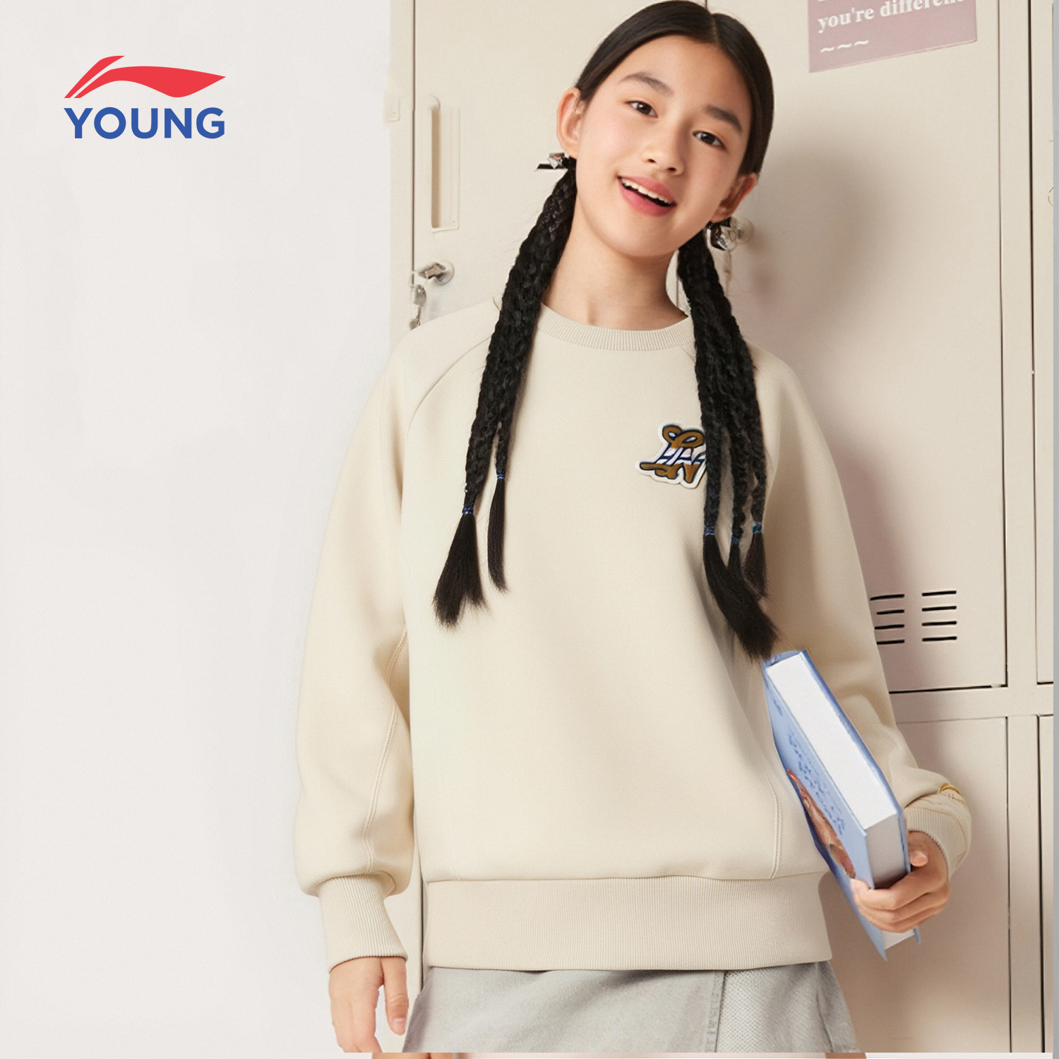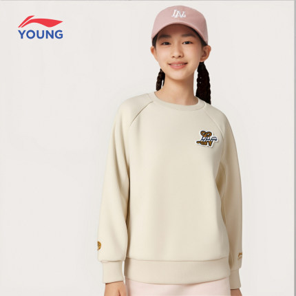 李宁童装女童卫衣25秋季新款圆领套头衫宽松舒适大码休闲运动上衣