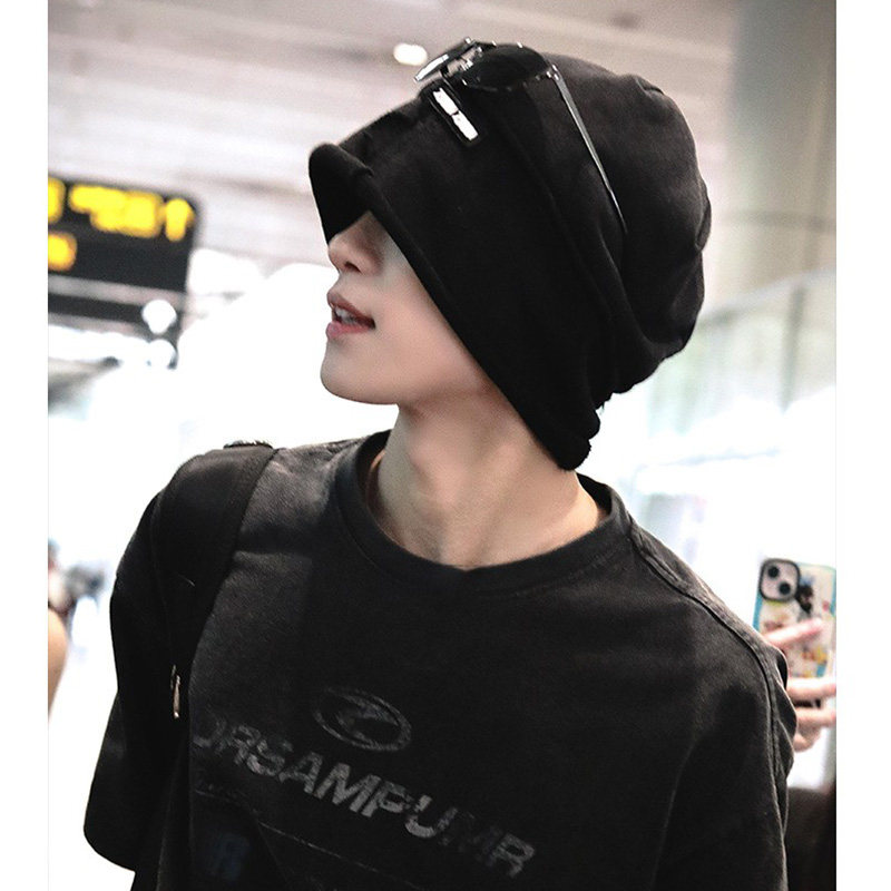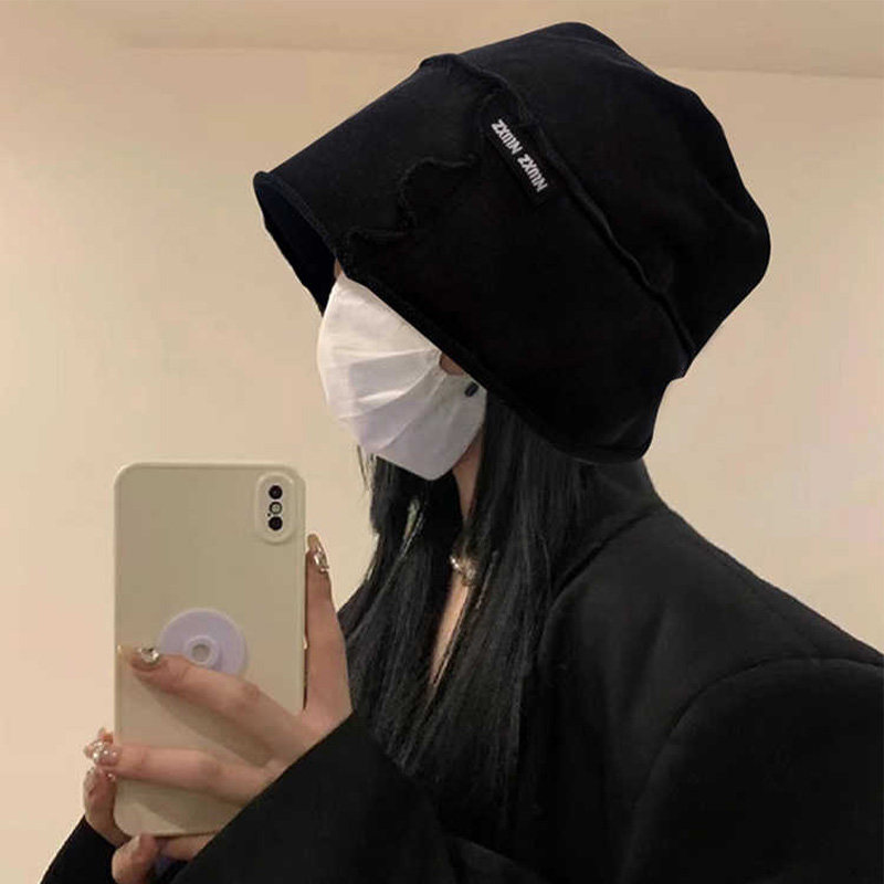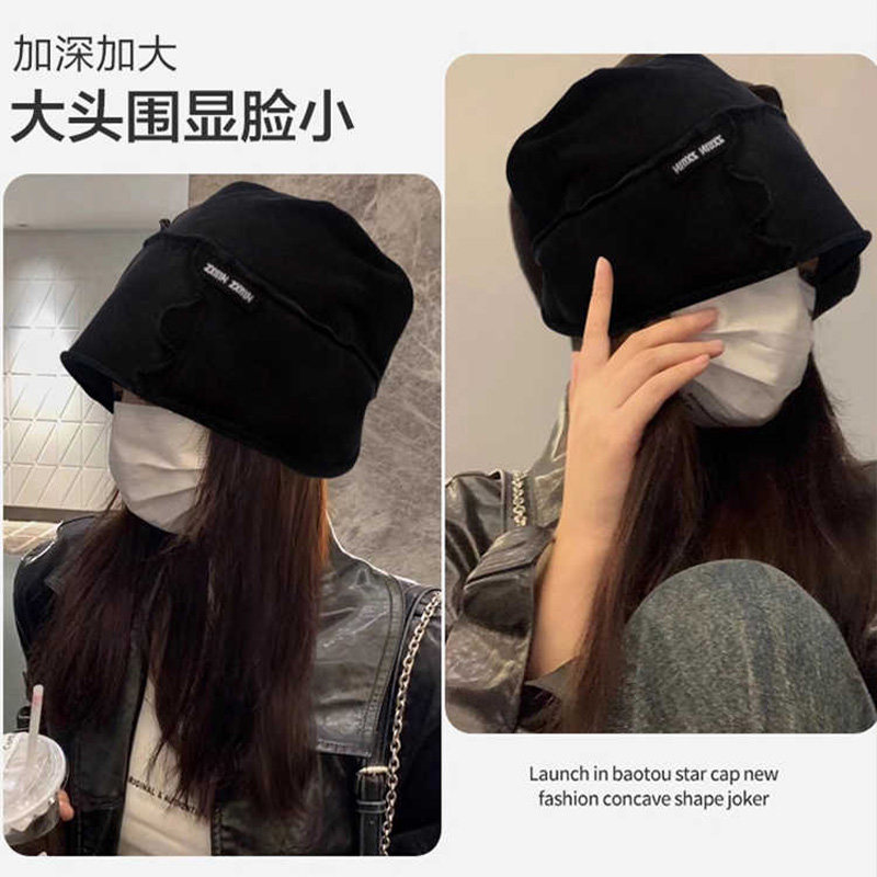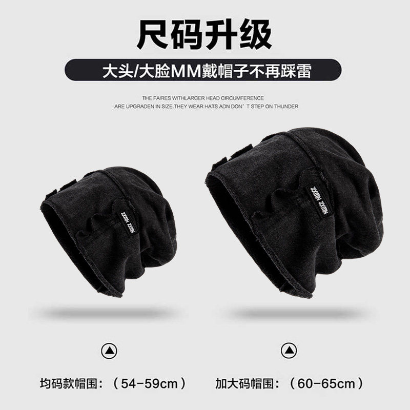 梓渝同款水洗复古做旧堆堆帽女黑色卷边冷帽显脸小宽松包头帽子男