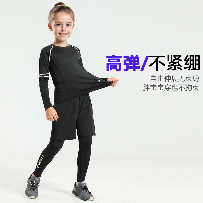 儿童篮球服训练服女童瑜伽舞蹈轮滑足球速干衣打底足球运动套装冬