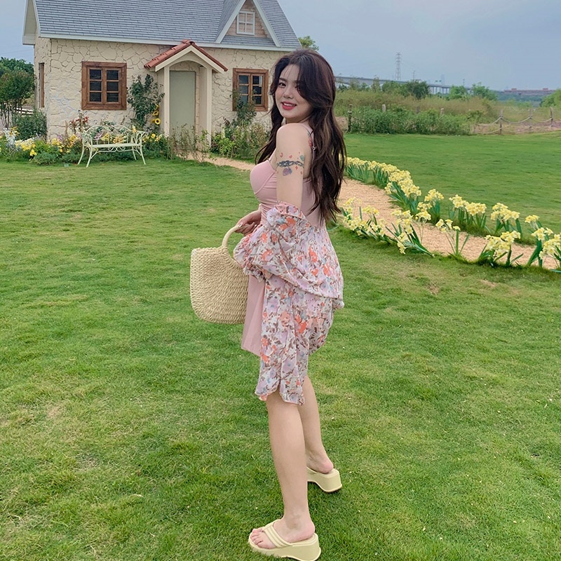 ins风韩国泳衣女性感大码胖mm200斤遮肚显瘦大胸连体裙式长袖温泉