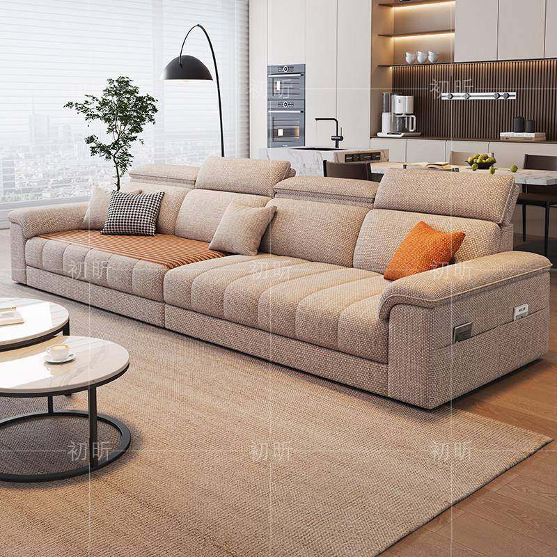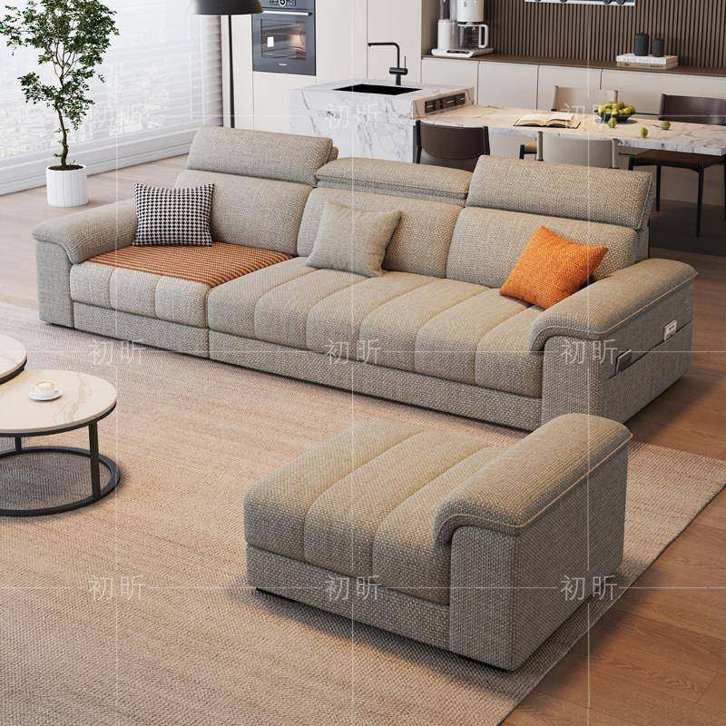 头枕可调节棉麻布艺沙发现代简约小户型客厅三人位灰色直排可拆洗