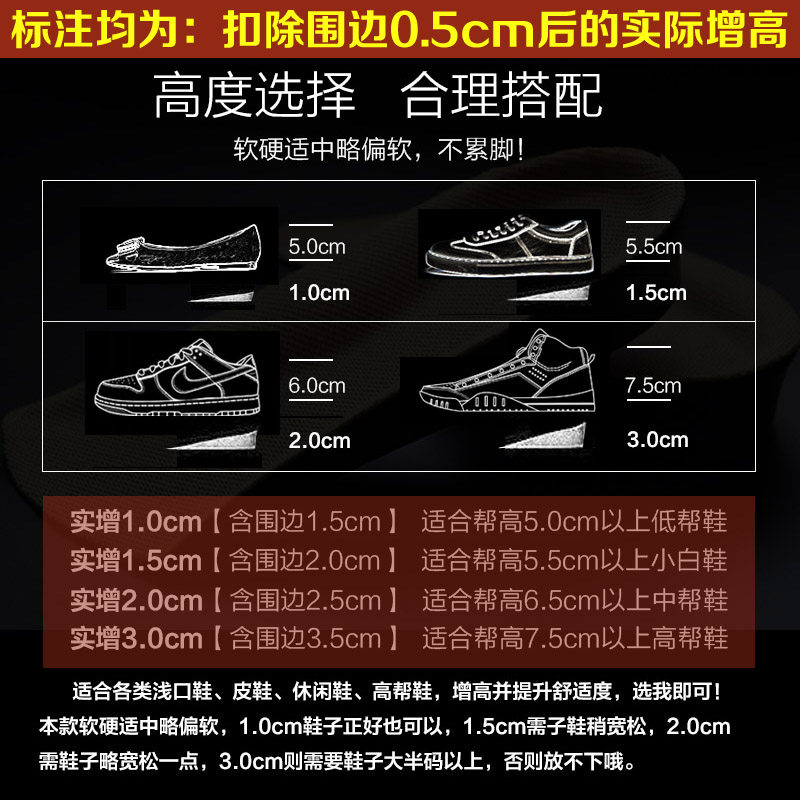 自粘硅胶内增高鞋垫女舒适减震隐形半垫后跟垫增高垫后半垫男3cm2