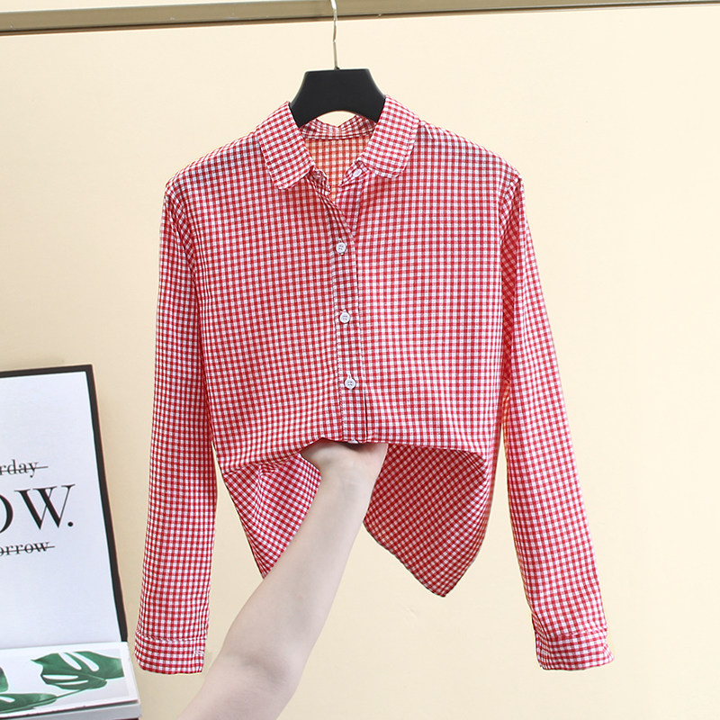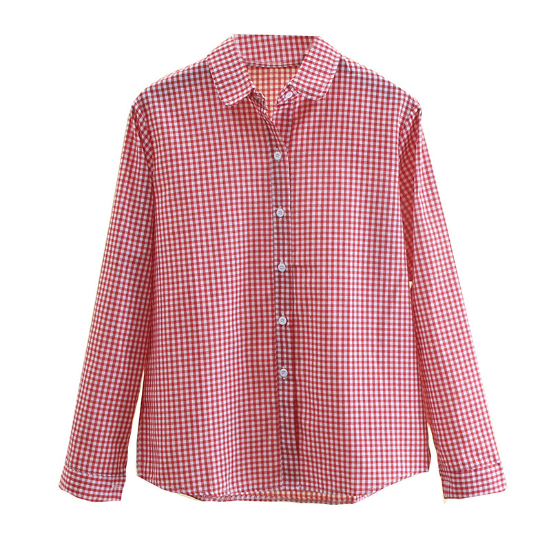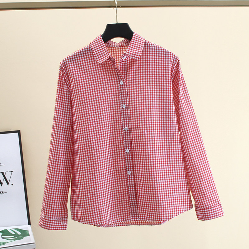 洋气时尚格子衬衫女长袖春秋新款百搭宽松显瘦学生内搭娃娃领上衣