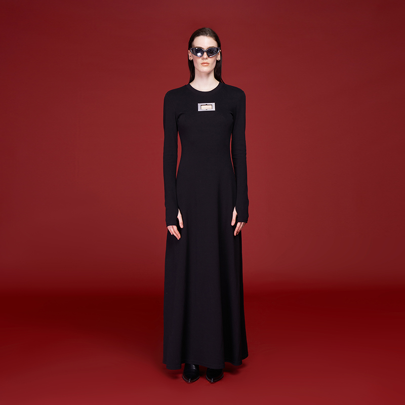 AKTK连衣裙 秋冬新品原创设计金属镂空修身显瘦高级连衣裙女