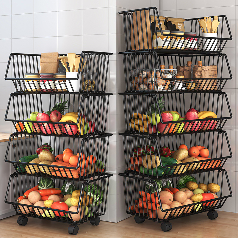 厨房置物架落地多层果蔬菜家用移动小推车零食收纳架子
