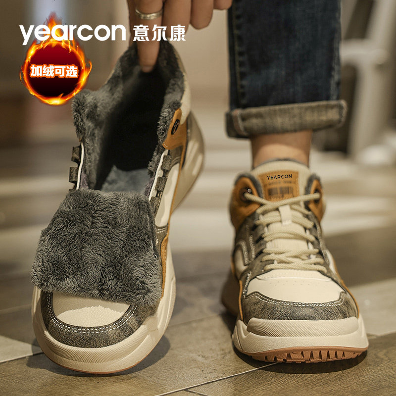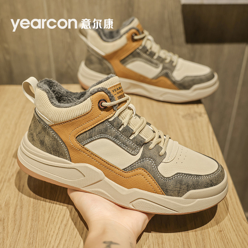意尔康男鞋2026新款冬季加绒厚东北大棉鞋男士增高帮运动休闲板鞋