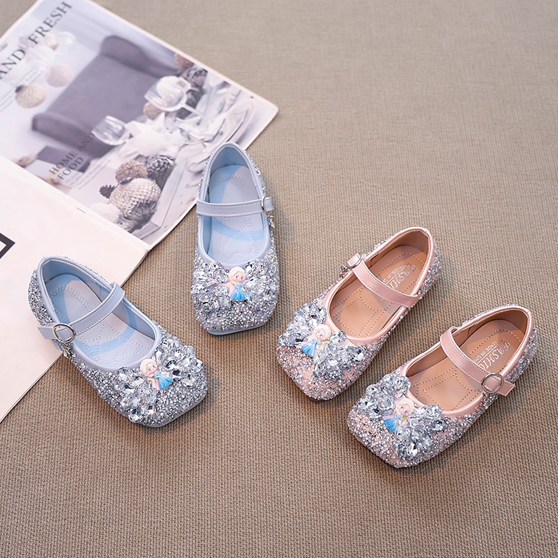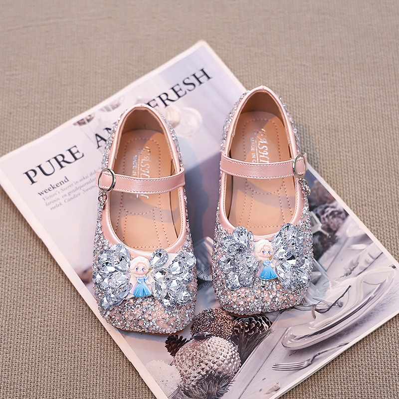 女童爱莎公主鞋2025年春秋新款女宝宝儿童鞋子水晶鞋软底皮鞋单鞋