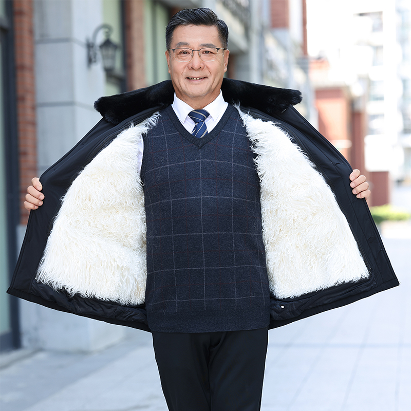 羊毛棉袄男皮毛一体外套中老年爸爸装老棉羊皮袄冬季加厚棉衣棉服