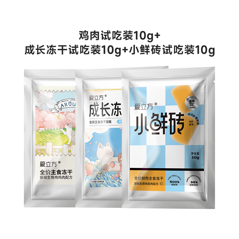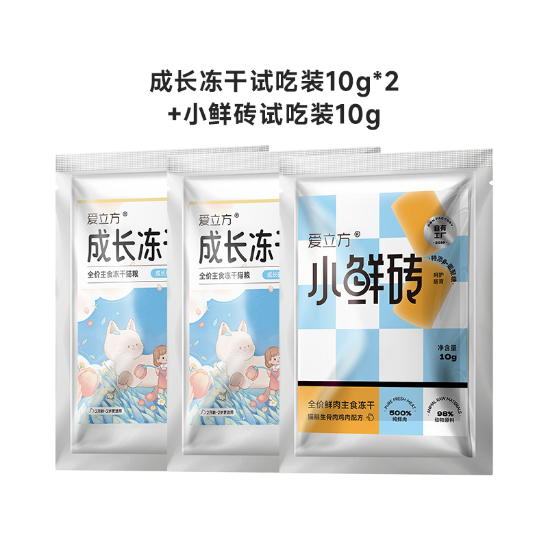 爱立方小鲜砖冻干生骨肉成长冻干粮成猫幼猫主食冻干猫粮试吃装