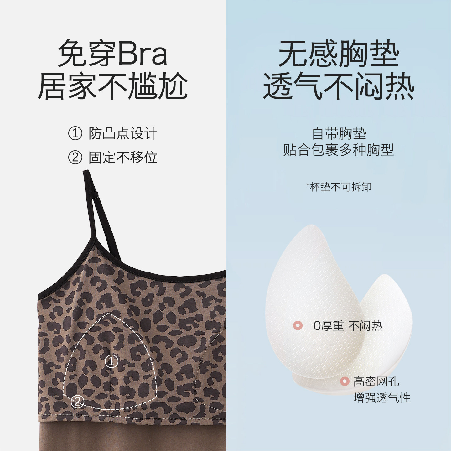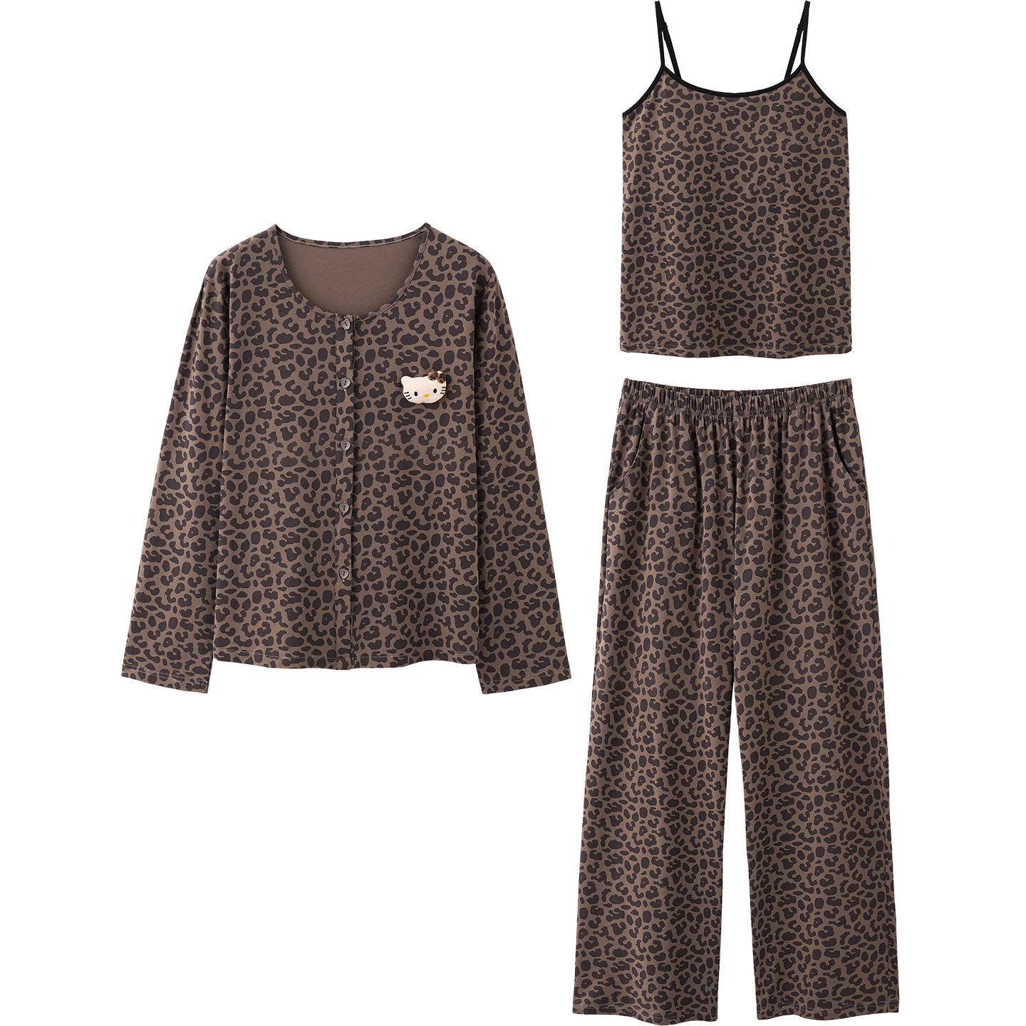 思莉太太三件套睡衣女款纯棉带胸垫吊带开衫可外穿豹纹春夏家居服