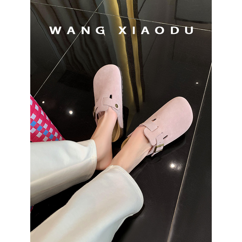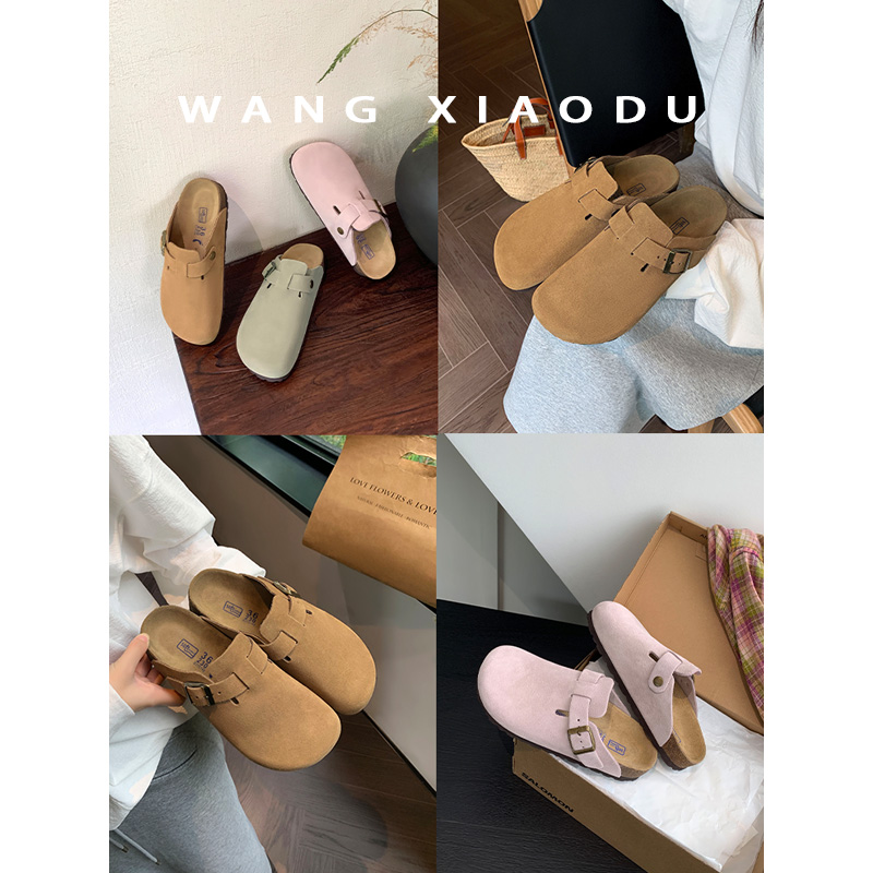 【王小毒】阳光周末○牛皮平底勃肯鞋女新款博肯鞋女包头半拖鞋子