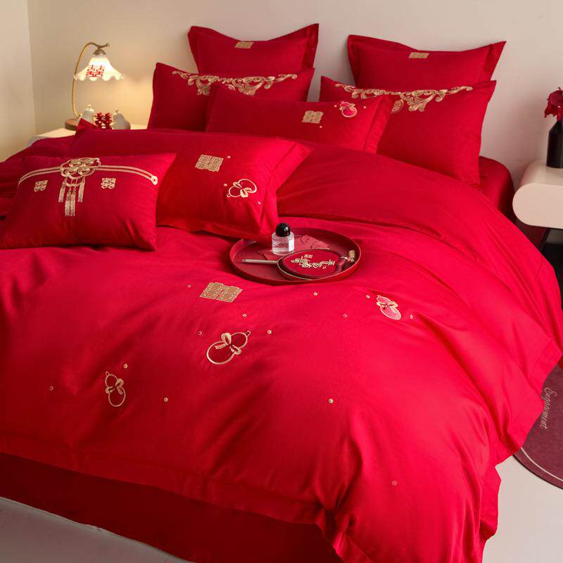 2025套款婚庆四件套中式喜庆结用婚床上新品大红床单被罩床dfhm28