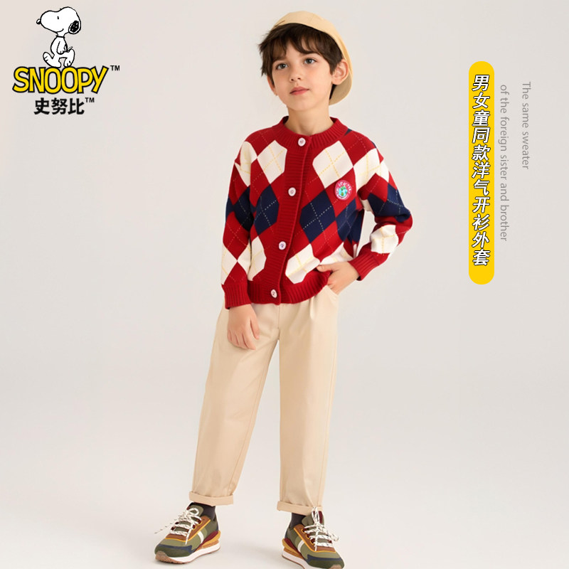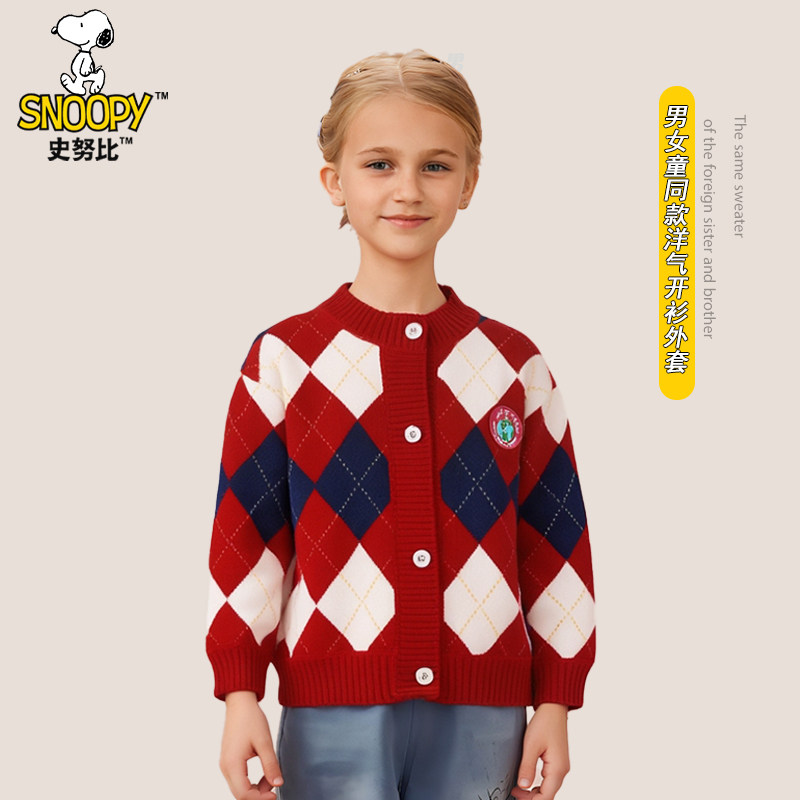 史努比男女童秋冬针织衫开衫2025新款时髦儿童宝宝毛衣小女孩外套