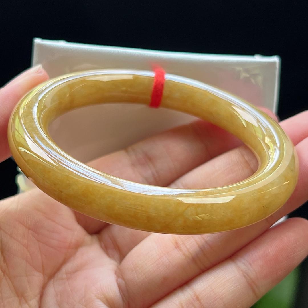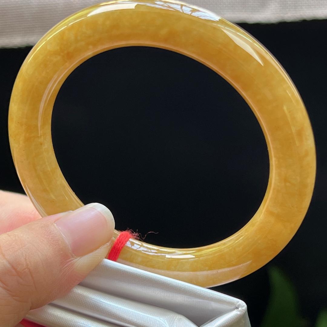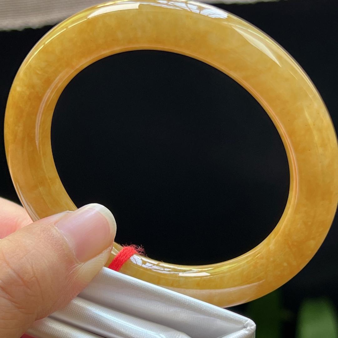 缅甸翡翠玉手镯福镯圆条55圈口天然玉石A货冰种黄翡高档证书1013