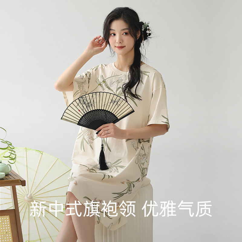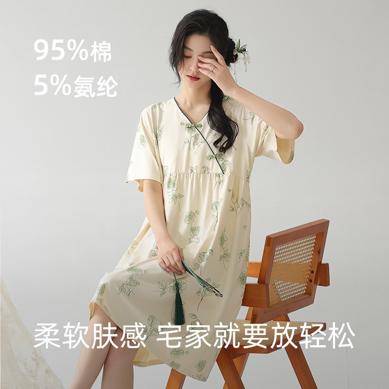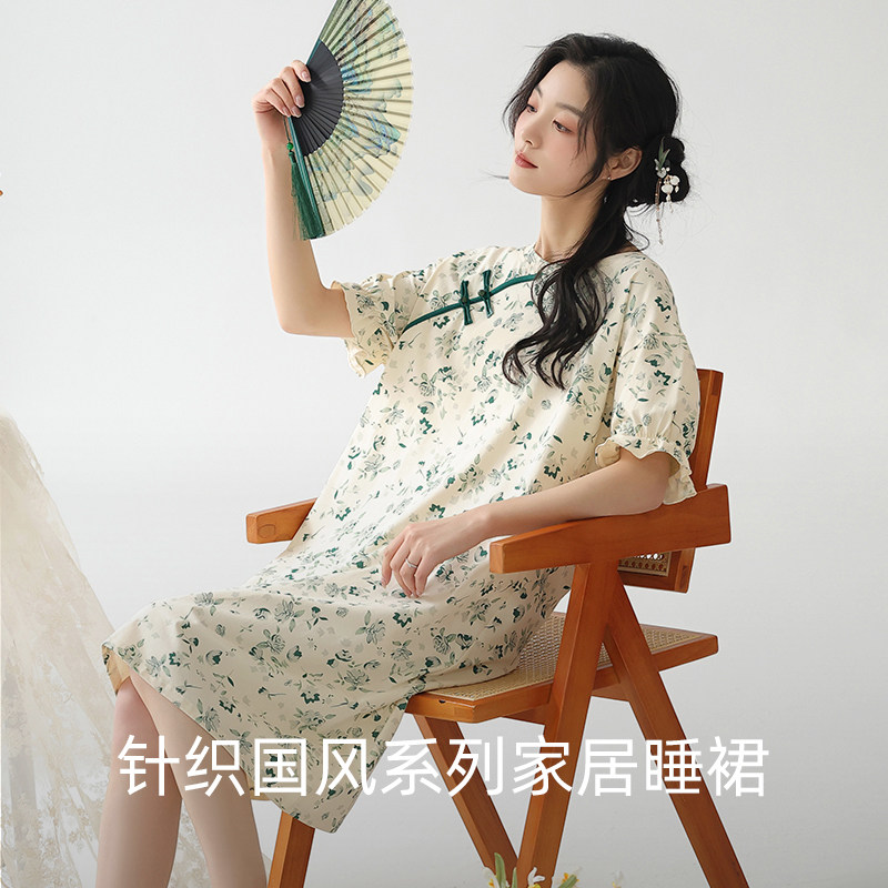 上海故事2025夏女国风新中式纯棉短袖印花睡裙送长辈家居服礼盒装