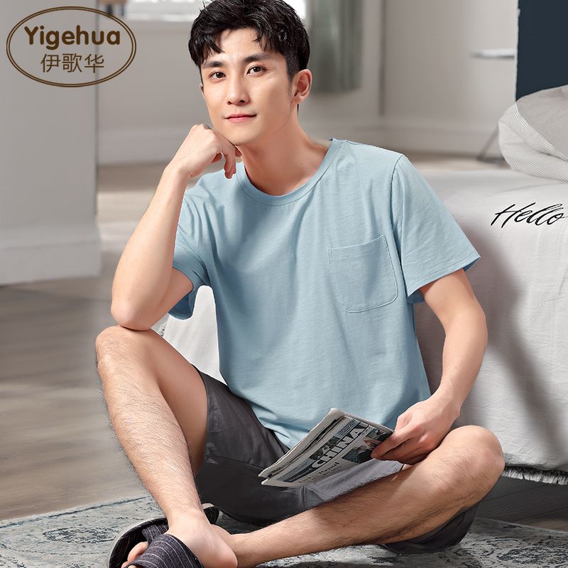 夏季男士睡衣纯棉短袖短裤薄款夏天休闲全棉男式家居服男大码套装