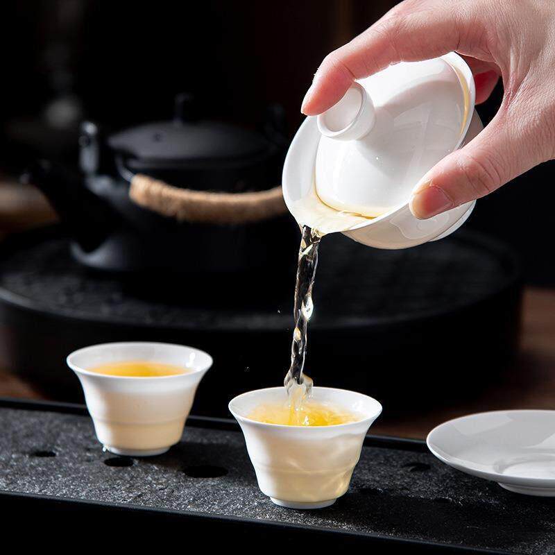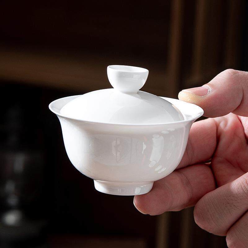 潮州超薄胎骨瓷三才杯盖碗茶杯白瓷功夫茶具礼盒套装家用主人茶杯