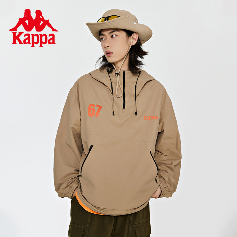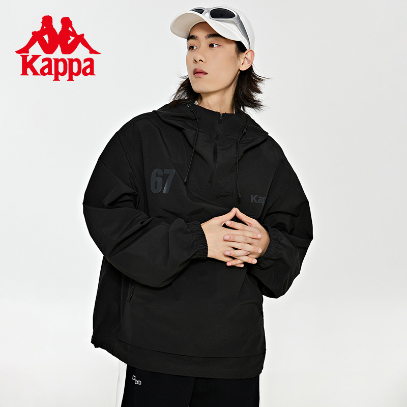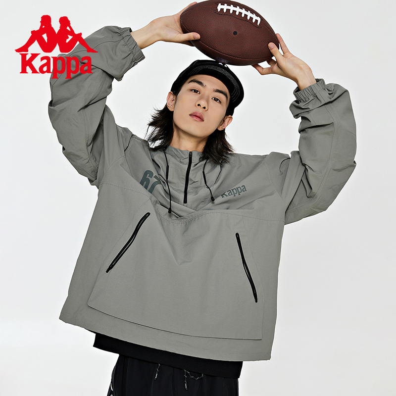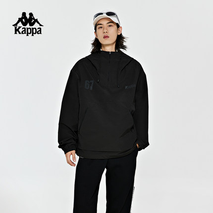 Kappa卡帕防风衣新款男半拉链套头衫梭织连帽抽绳长袖KPCEDFJ01