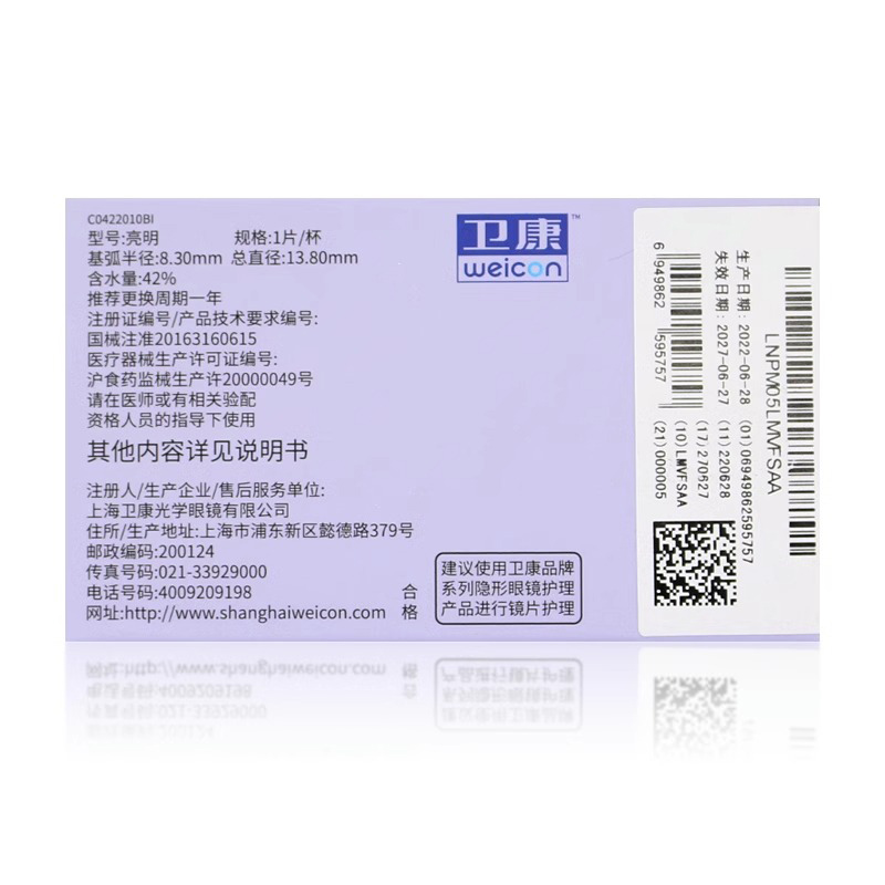 卫康亮明近视隐形眼镜年抛2片非半年抛季抛高度数官方旗舰店正品