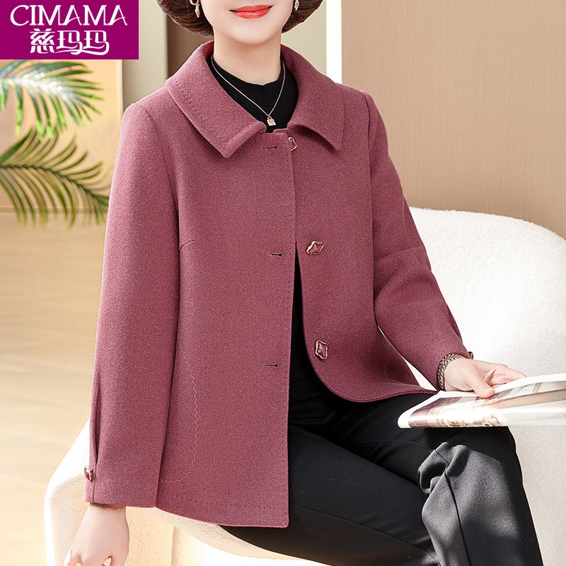 妈妈秋装外套宽松大码中老年女秋冬洋气带领短款毛呢上衣2024新款