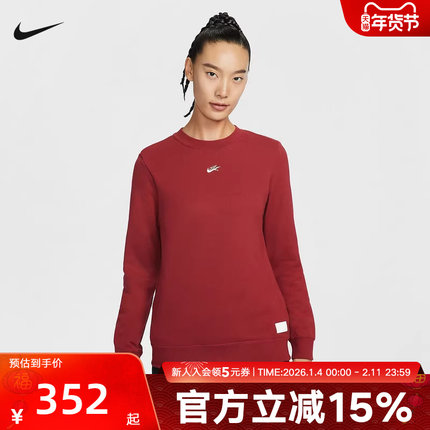 耐克女卫衣26春马年限定新年款红色小马刺绣针织套头衫IQ3827-613