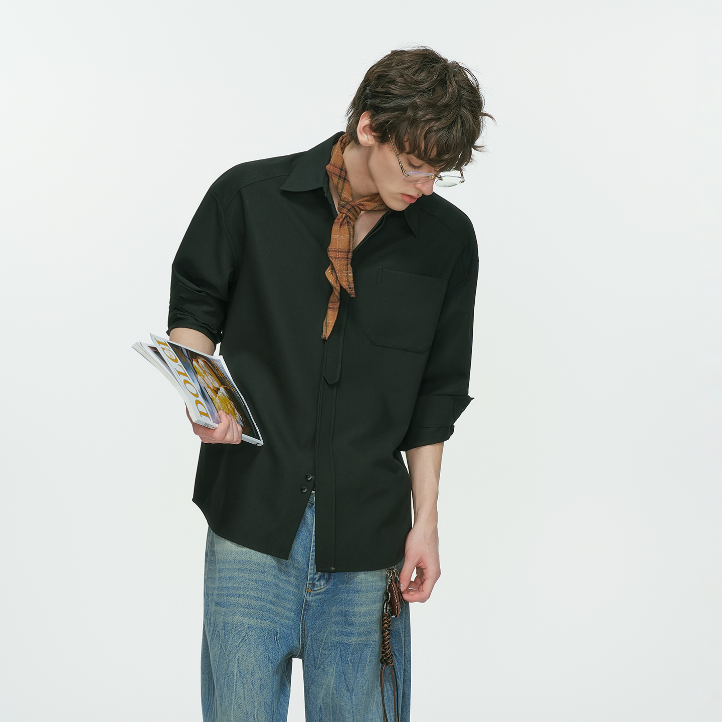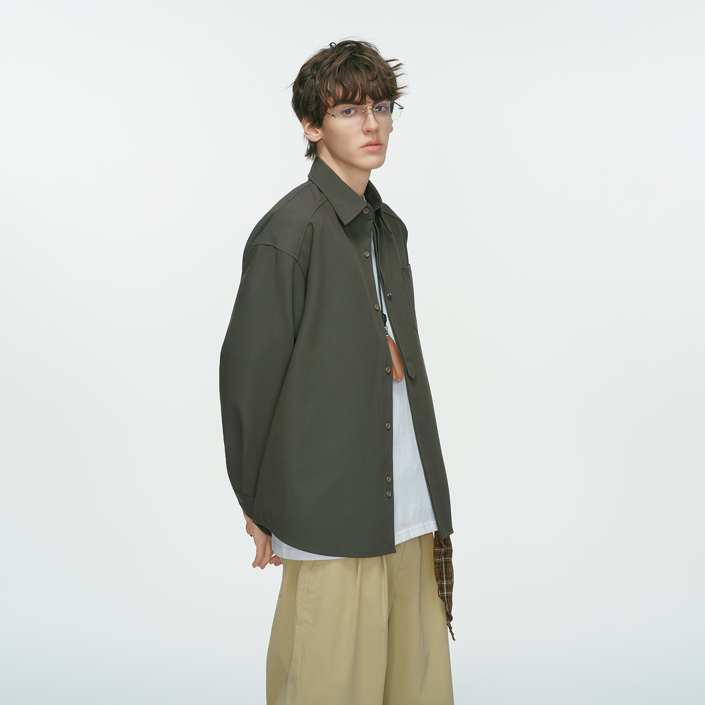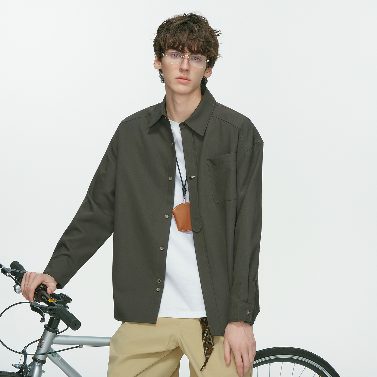 Dream made高级设计感韩版通勤长袖衬衫男春秋季纯色休闲宽松衬衣