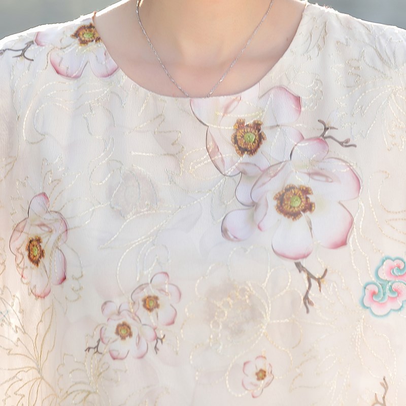 新款中年妈妈夏装套装阔太太雪纺小衫中老年女夏季时尚母亲节上衣