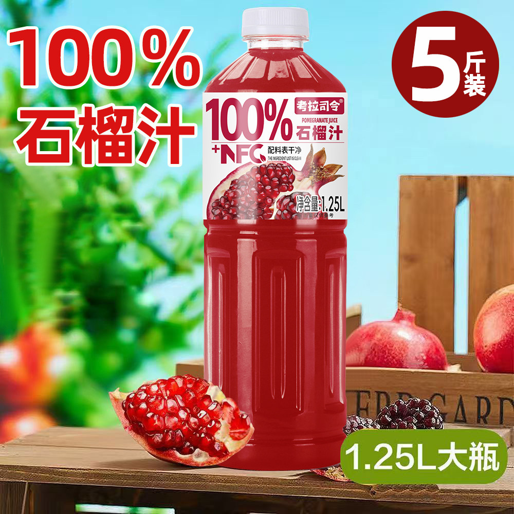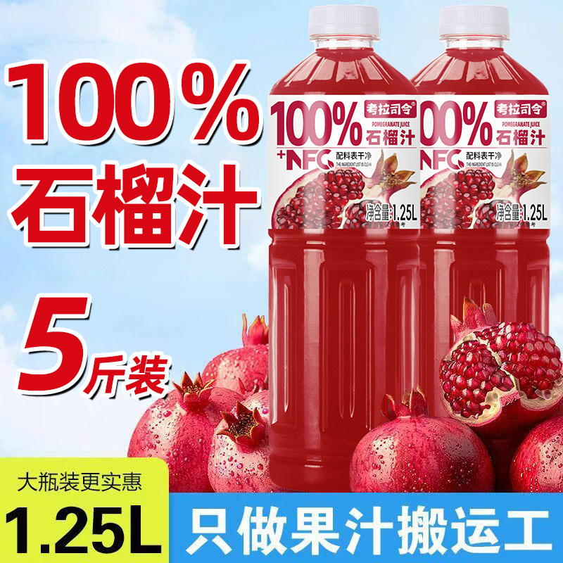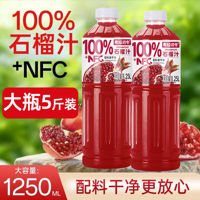100%石榴汁1.25L*2大瓶装加NFC果汁饮料饮品新鲜好喝浓缩司令原汁