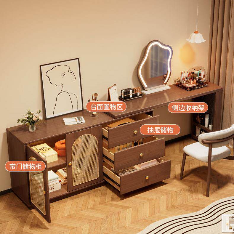 书桌柜子一体中古风卧室成套家具小户型可伸缩梳妆台凳转角斗柜