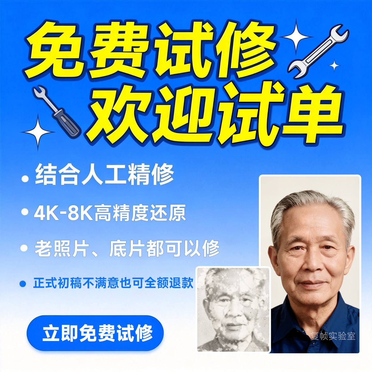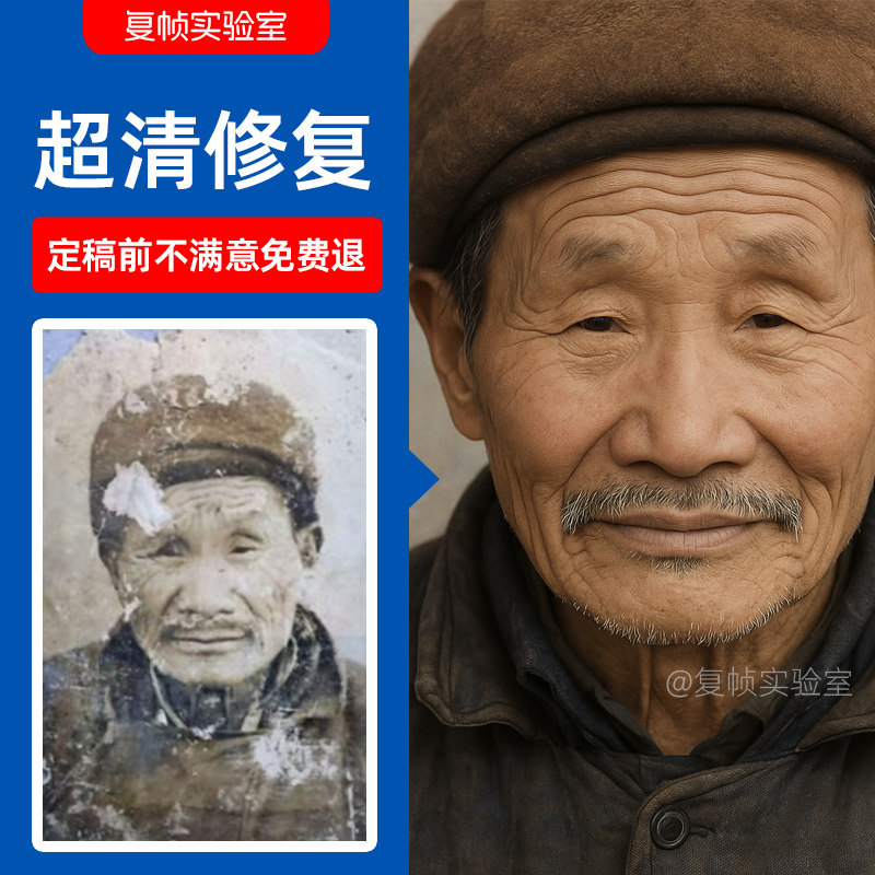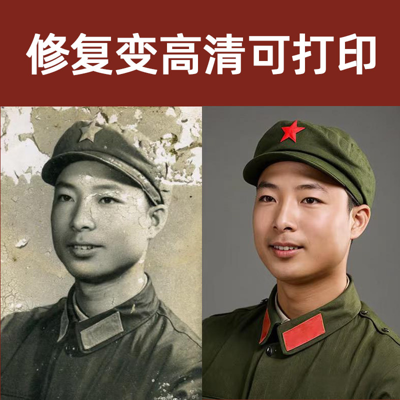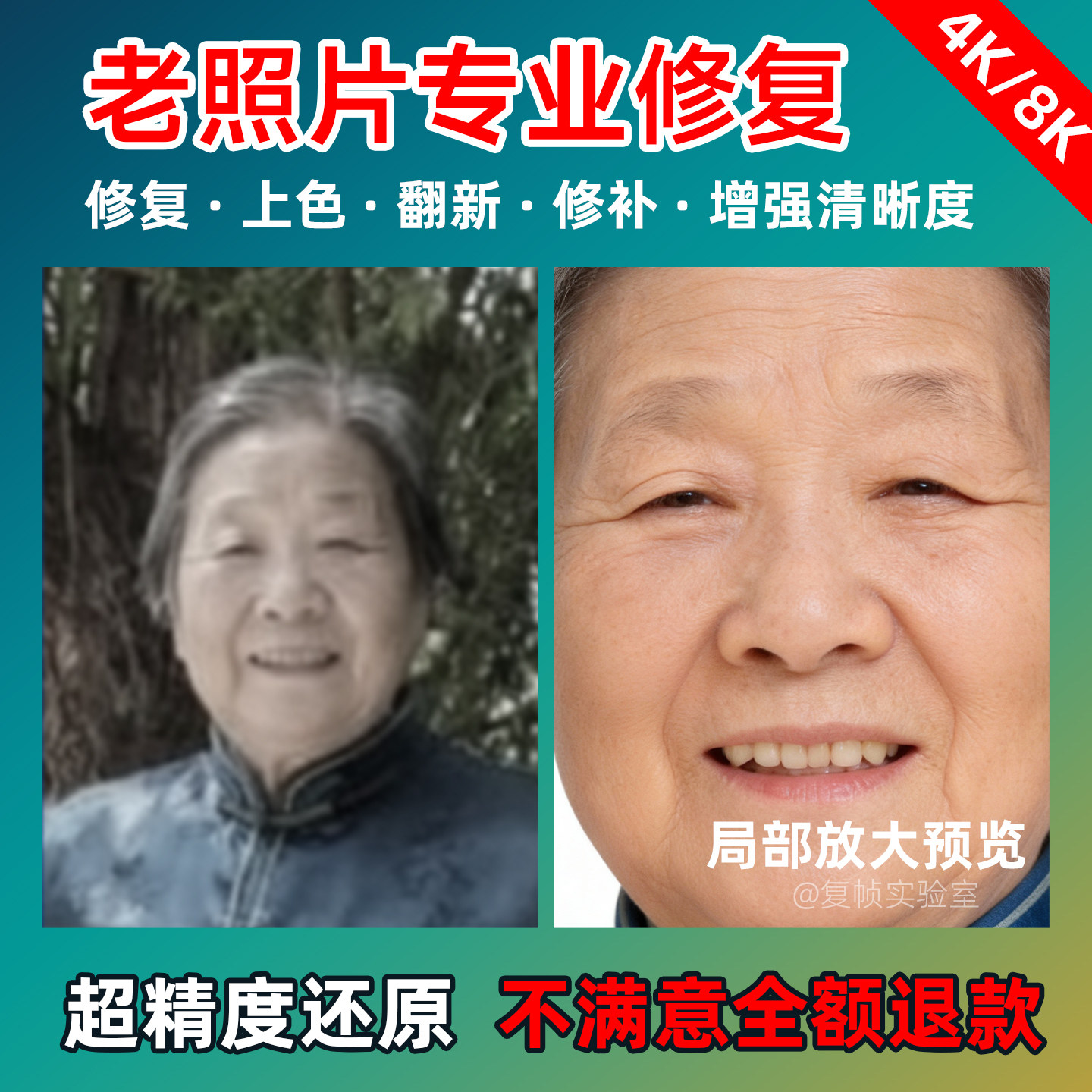老照片修复翻新 人工精修上色 8K高清AI还原破损旧照打印相框装裱