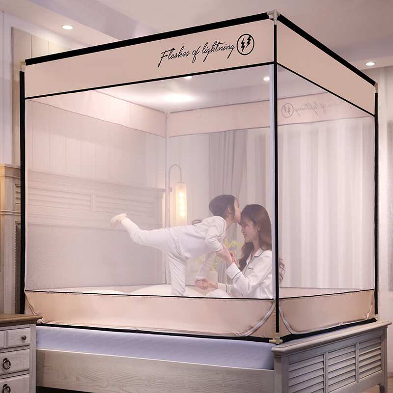 母婴级防摔儿童三开门床笠蚊帐加厚粗支架大方顶宝宝防尘蚊帐