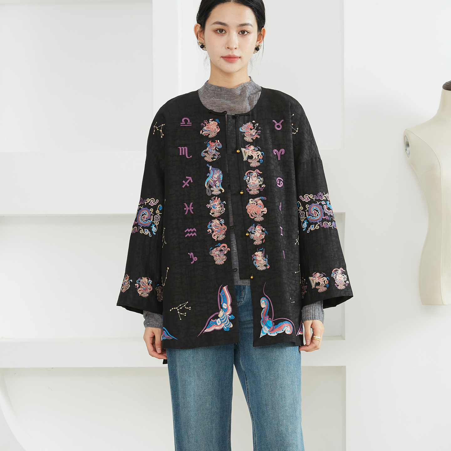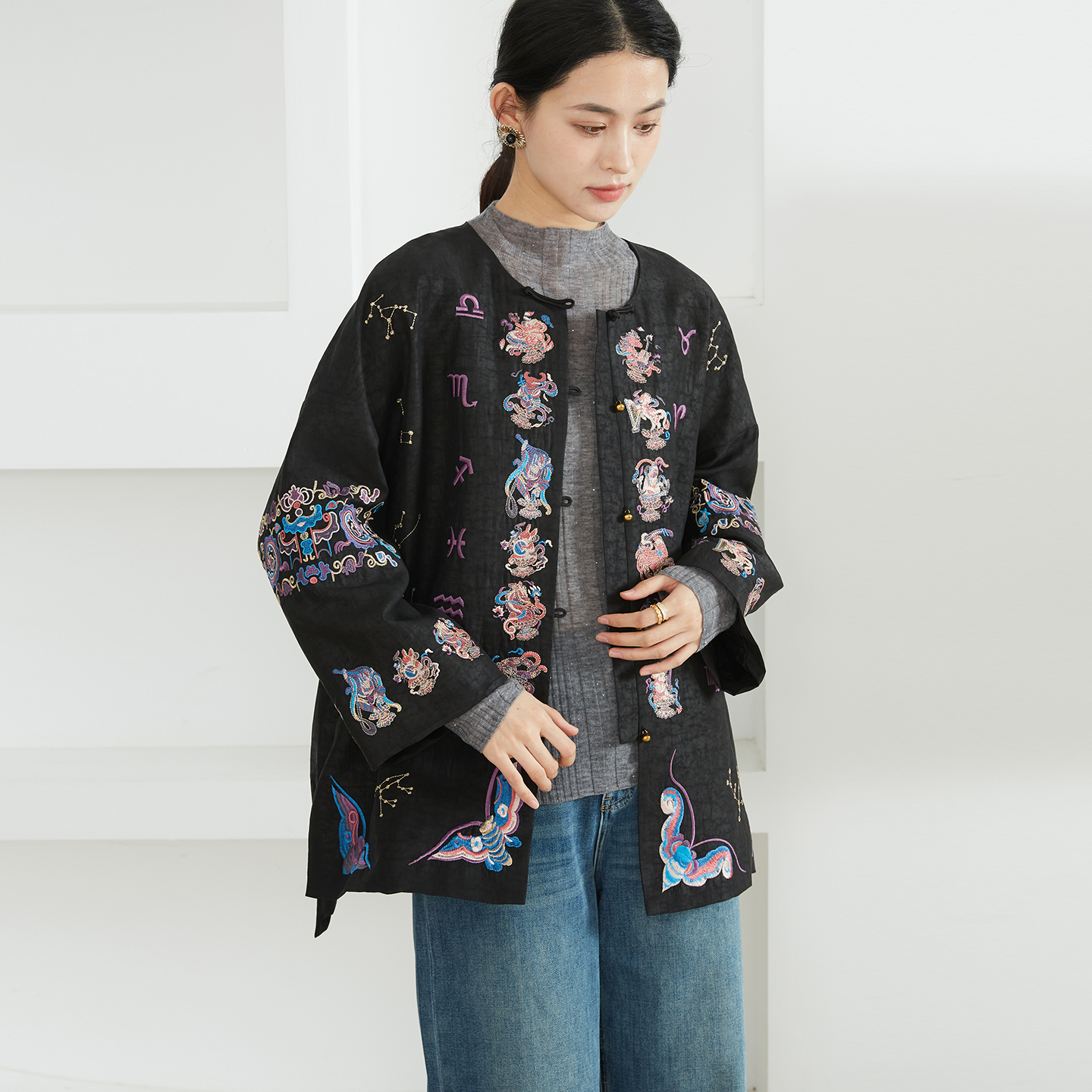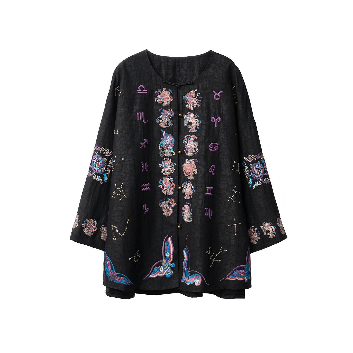 一丝牵100%桑蚕丝重工刺绣真丝香云纱龟纹外套新中式开衫国风上衣