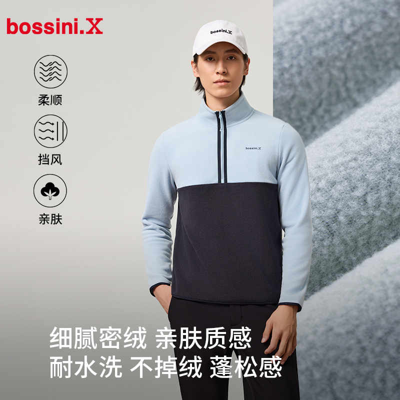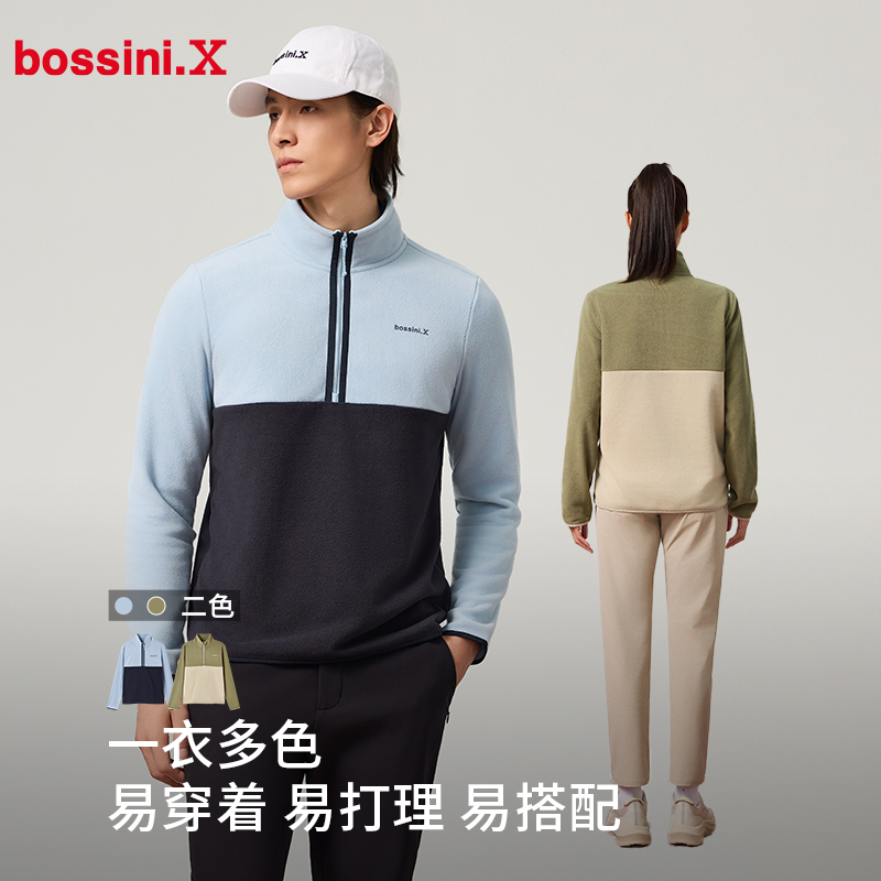 bossini堡狮龙2024秋冬半拉链套头衫男抓绒内胆卫衣女