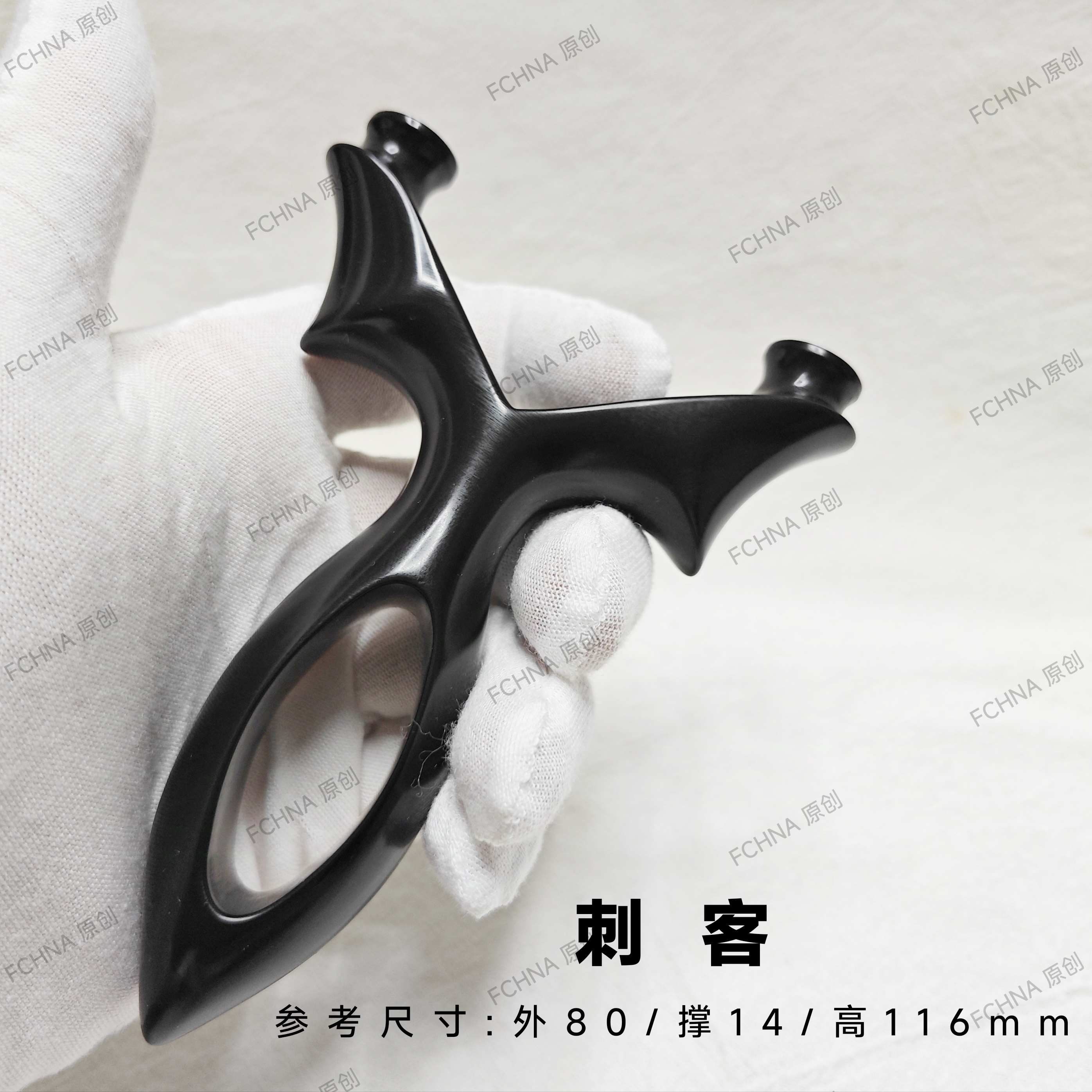 新款环氧树脂刺客直板飞虎指虎扁皮弹弓户外竞技精准非实木紫光檀