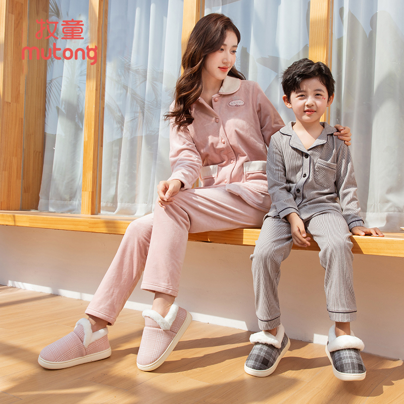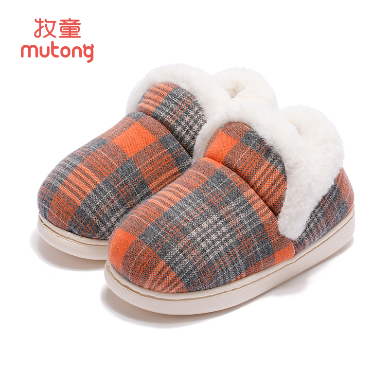 牧童儿童棉拖鞋包跟冬季男室内家居女童小孩软底亲子加绒保暖棉鞋