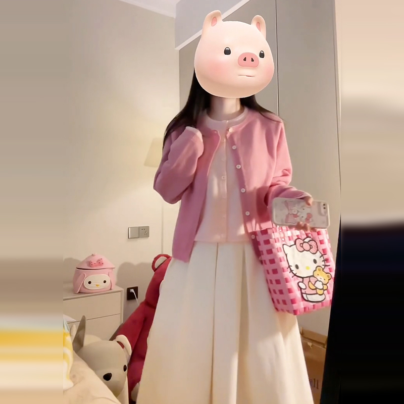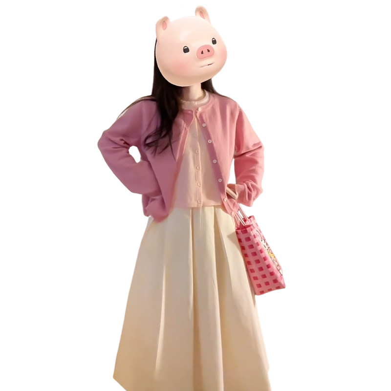 2025新款开春穿搭一整套连衣裙子女春夏季假两件粉色针织套装长裙