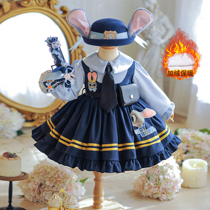 秋冬加绒女童长袖兔子警官朱迪连衣裙洛丽塔公主裙蓬蓬高端原创裙