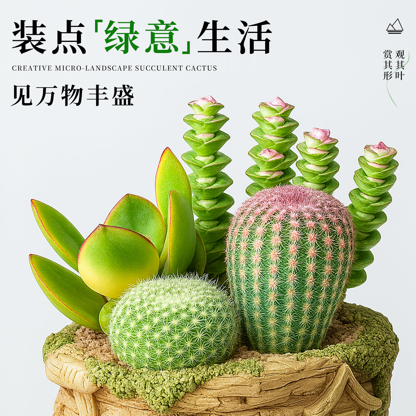 多肉绿植物组合盆栽办公桌面室内创意摆件生日礼物仙人掌肉肉花卉