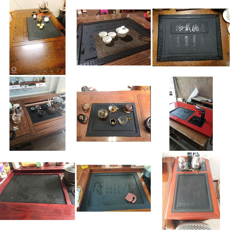 大理石火烧石漏水盖板面板内嵌定制定做茶桌茶盘中间嵌入式乌金石