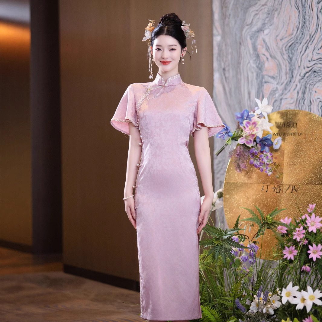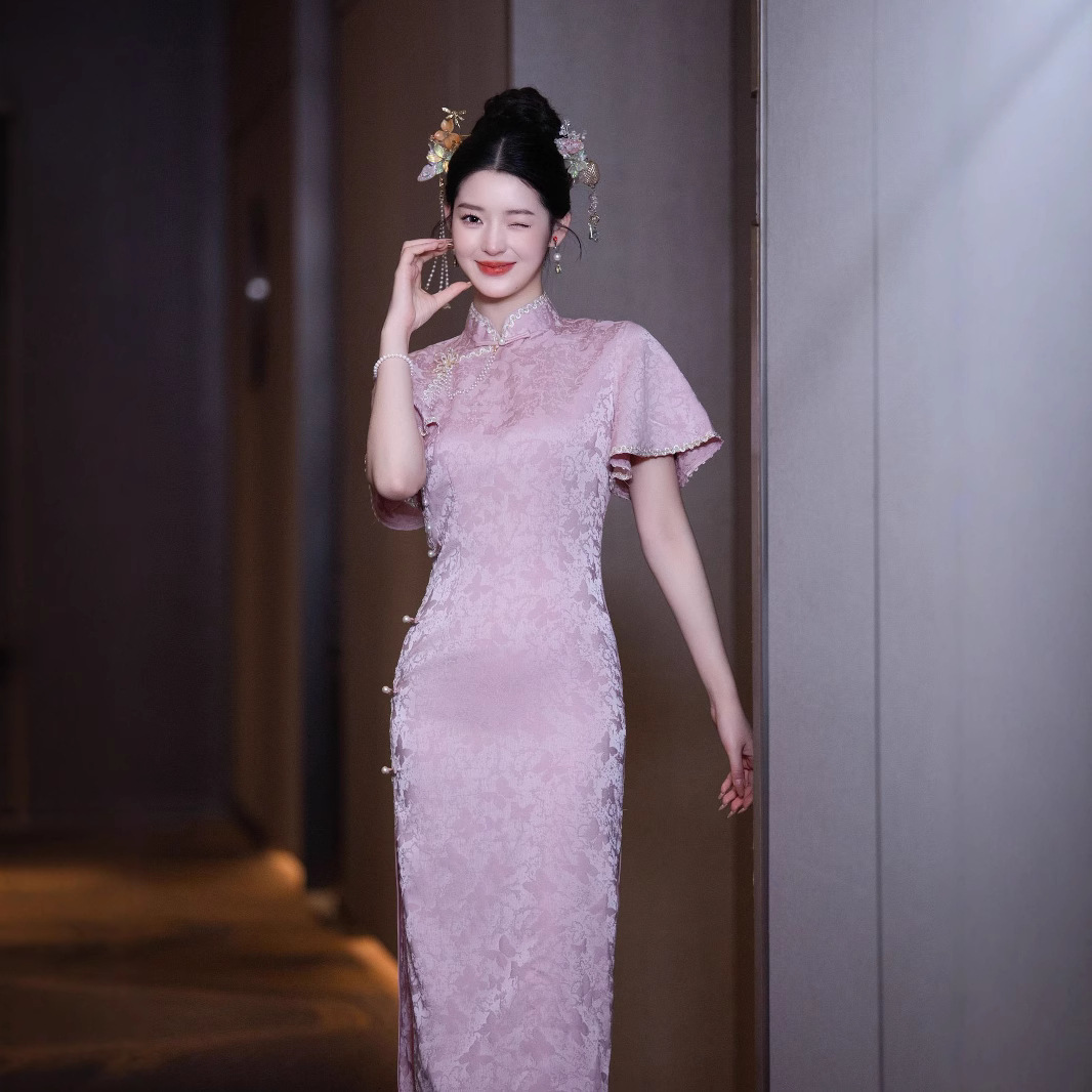 藕粉色旗袍2025敬酒服新娘新中式改良年轻款提花结婚订婚礼服裙