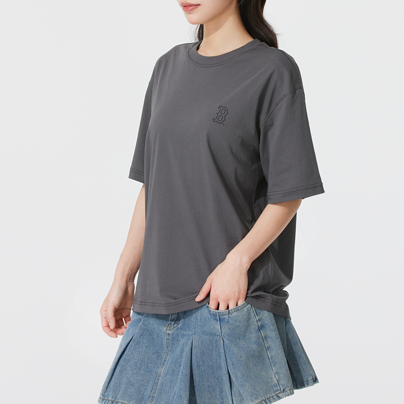 【自营】MLB男装女装舒适透气简约运动服深炭灰色户外休闲短袖T恤