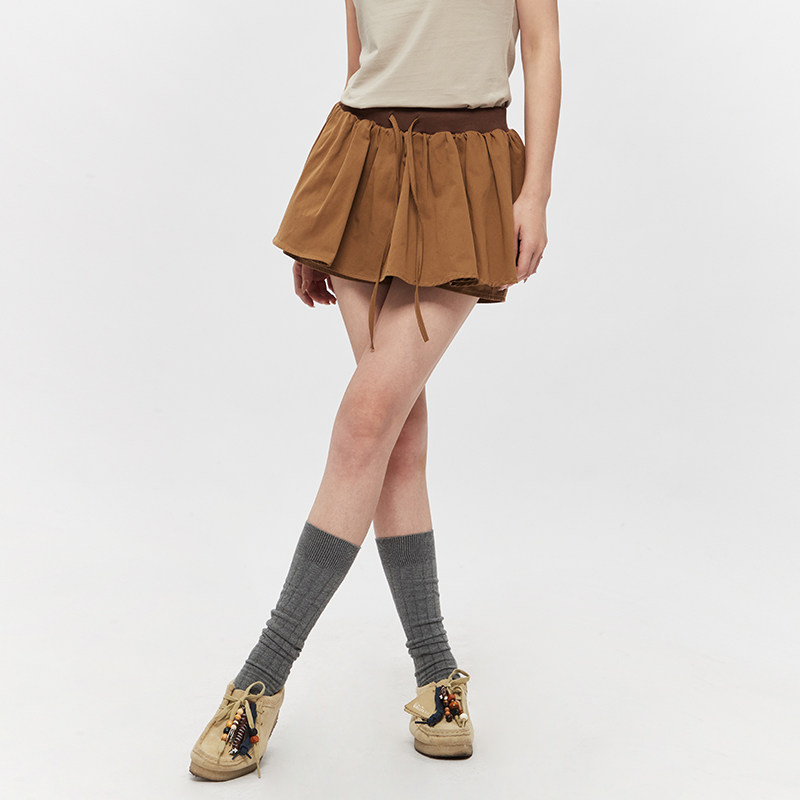 AIRHOOD 高腰百褶短裙防走光a字蓬蓬花苞裙半身裙2025夏季裤裙女