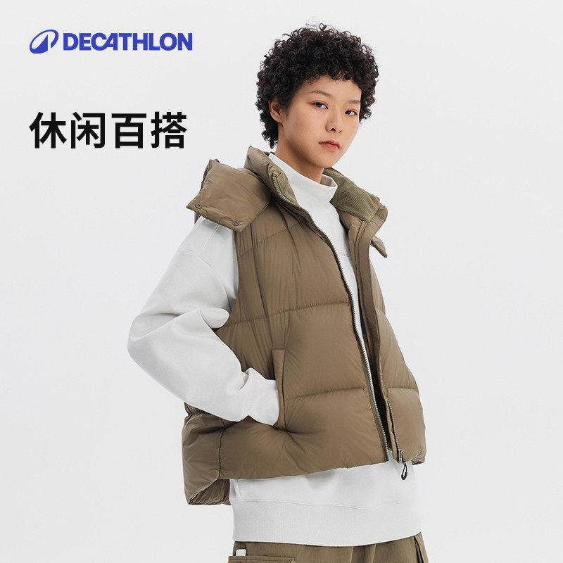 迪卡侬SPW361086羽绒马甲女城市机能防泼水保暖背心立领上衣SAX1